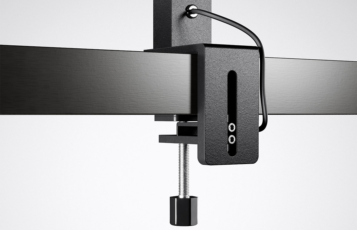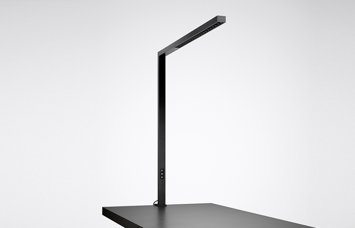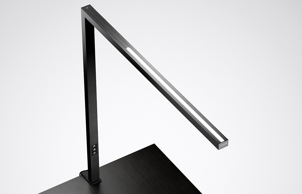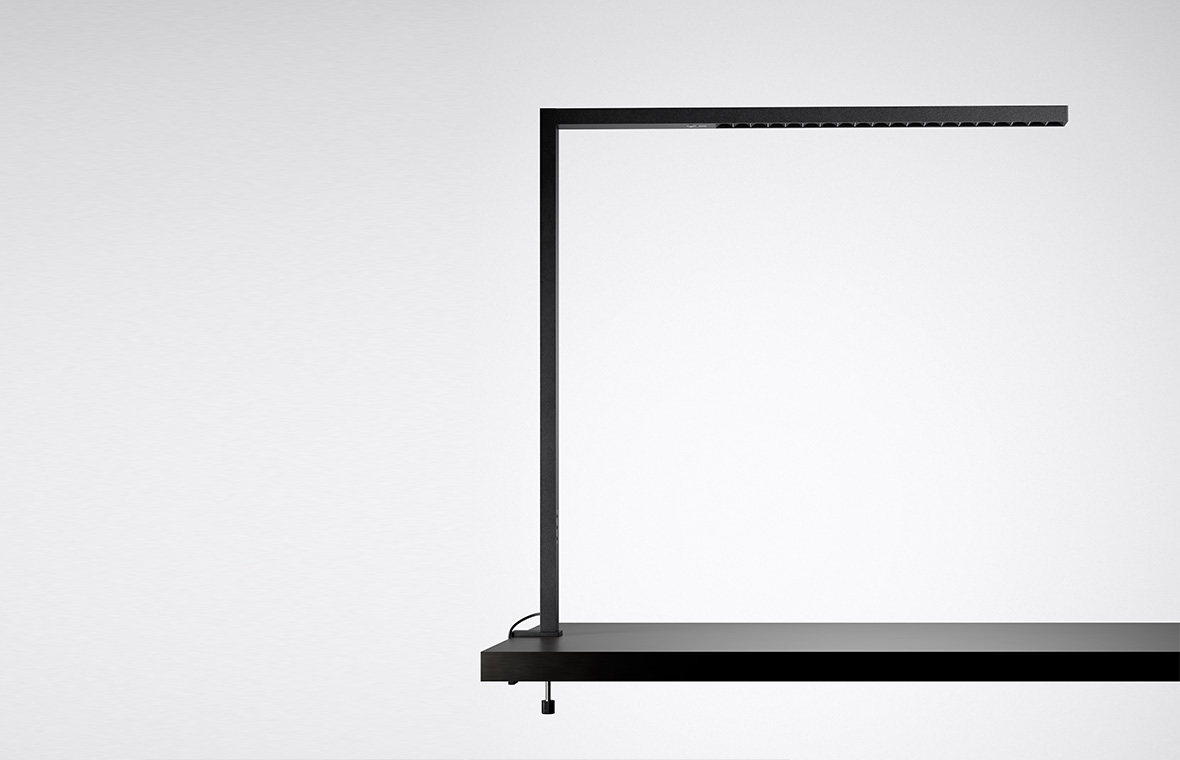 Single, dual or with table clamp: three different versions make Eralia standing and desktop luminaires a flexible lighting solution for all work situations. As a single- or double-head luminaire, Eralia stands securely on a sturdy U-shaped base and can save space when positioned around desk legs. The Eralia clamp-mounted luminaire can also be attached quickly, securely and gently to table tops. The maximum depth is 75 mm.