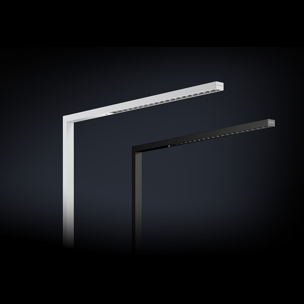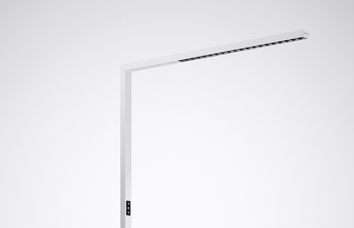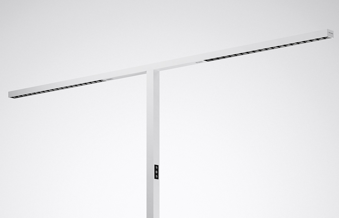 Less luminaire, more light: Eralia free-standing and desktop luminaires feature a minimalist, linear design that blends discreetly into any office environment. Highly efficient LED reflector optics ensure uniformly bright, glare-free light distribution with minimal energy consumption.
