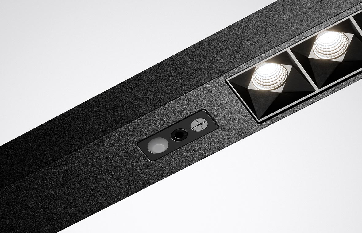 A presence sensor controls the automatic switch-off of Eralia: if no movement is detected the luminaire switches off after 15 minutes.