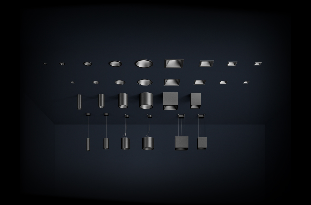 Round or square, horizontal or vertical lighting, from narrow distribution spotlights to high lumen-output wallwashers: Sonnos LED is available in five sizes for ceiling cut-outs from 45 to 210 mm. The design, materials and lighting technology of the various product versions are consistent. All variants can be ideally combined in a single project.