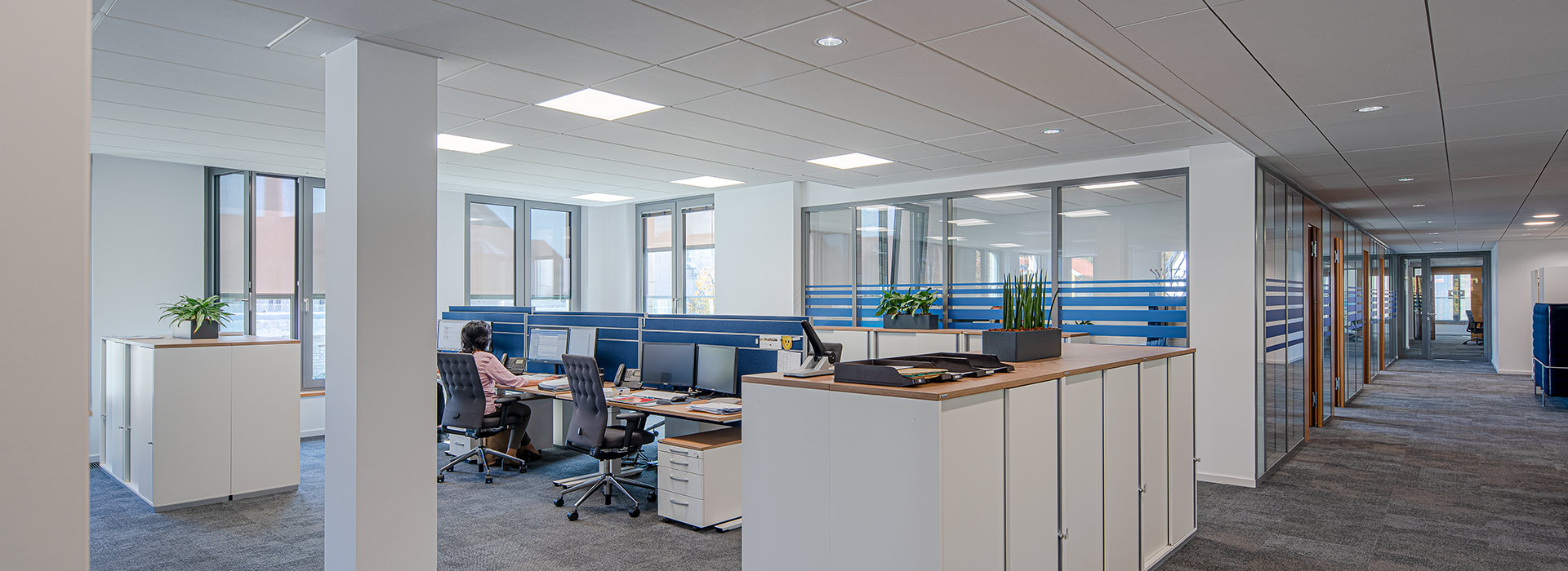 Regardless of whether it's a classic office or a new-work environment, a single, double or open-plan office: lighting management must always be adapted to the respective area of use. Of course, this also applies to corridors, stairwells and entrance areas.
