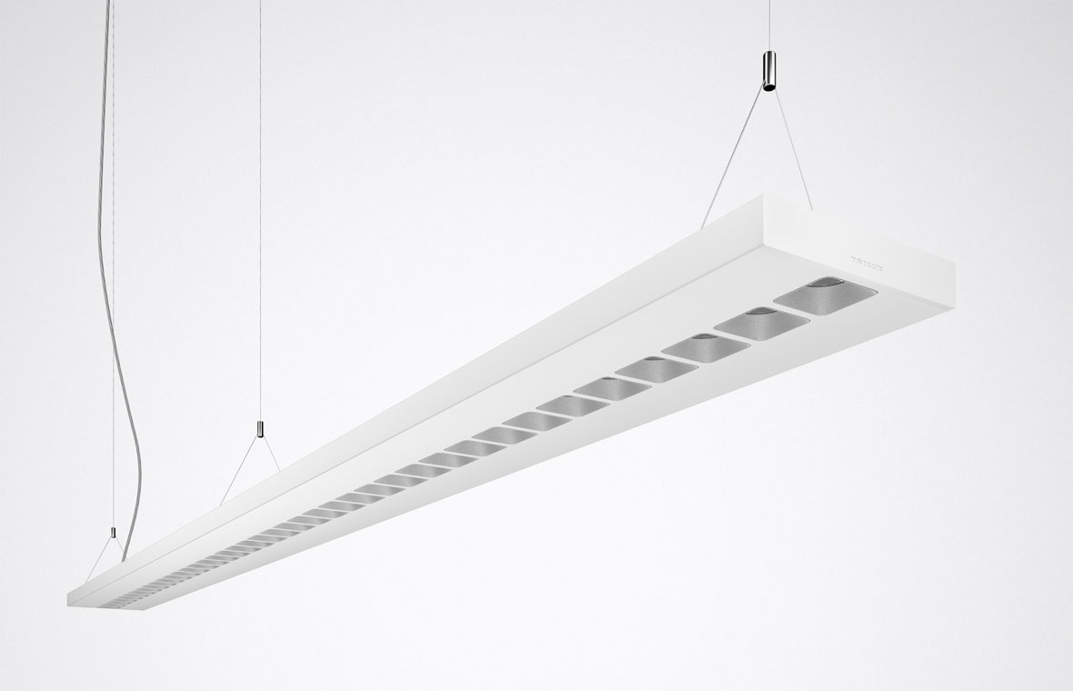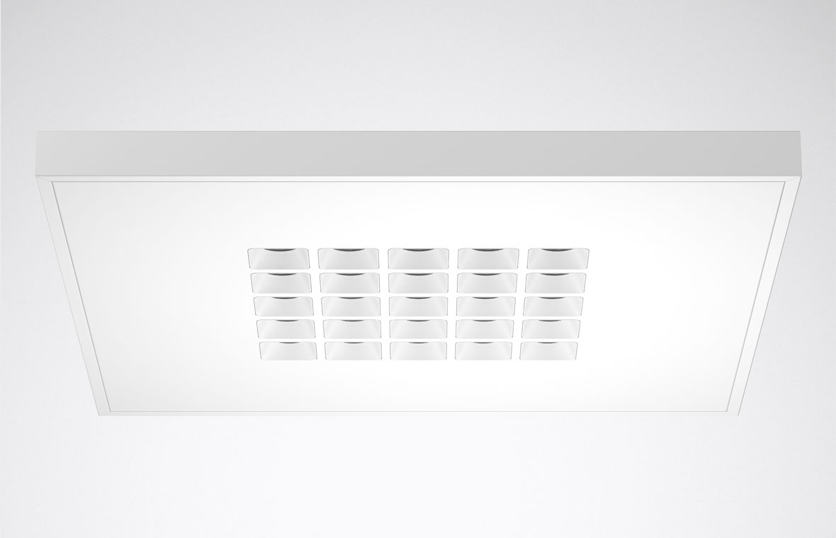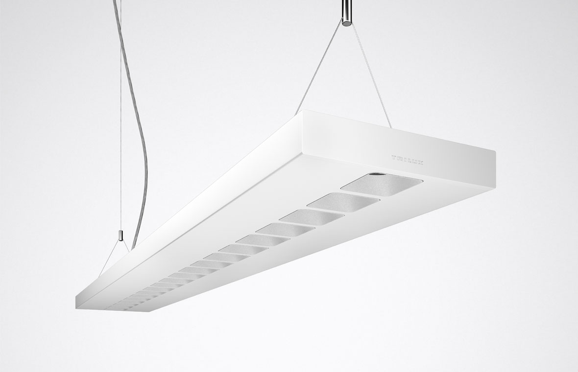 Planar luminaires have established themselves as a universal standard in offices. However, they feature hardly any visual distinguishing characteristics and often do not achieve the highest possible efficiency. Differentiation is achieved by directional systems though, but these are often not convincing because of their perceived high glare levels and annoying multiple shadows.