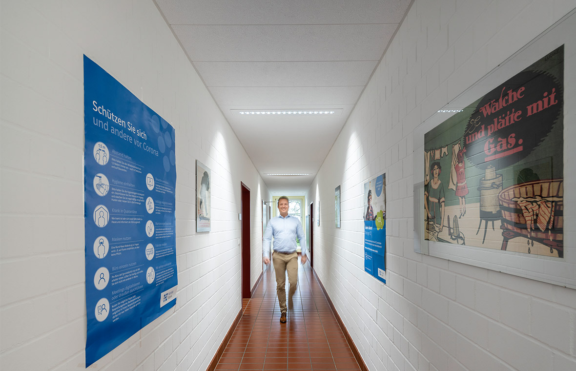 Luminaires can be quickly and easily networked with the TRILUX LiveLink light management system. In building areas without DALI control lines, the luminaires can be networked via LiveLink Wireless.