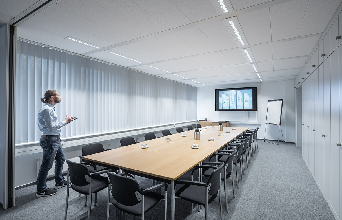 Anything goes: thanks to a broad portfolio of sizes, optics and mounting methods, all lighting tasks in offices and education can be solved with one luminaire range – e.g. with a wall-washer for panel lighting in the same luminaire design.