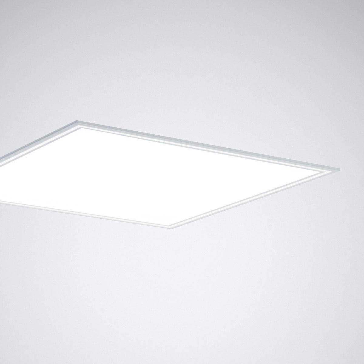 The Lunexo LED clearly focuses on light and effect. The smooth light emission surface creates especially pleasant and glare-free light in accordance with UGR 19, for the standard-compliant illumination of workstations.