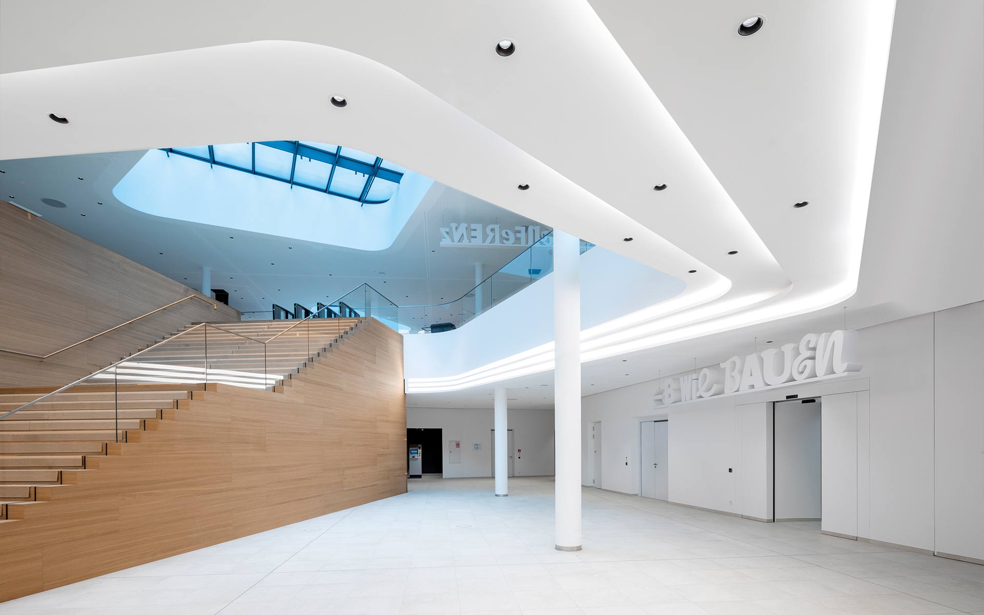 High level of special lighting expertise with in-house manufacturing. Architecture and lighting are partners with enormous potential, because light makes a decisive contribution to a unique architectural experience. A future-proof lighting solution must not only be standard-compliant, efficient and sustainable, it must also createoptimum working conditions and attractive feel-good atmospheres.