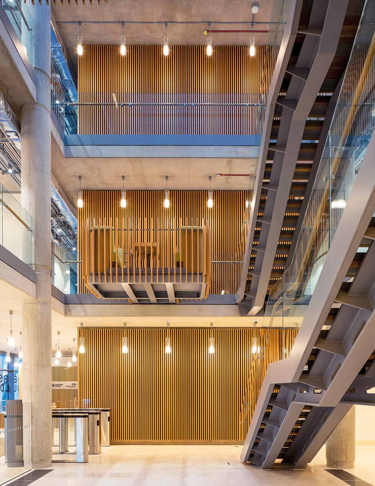 Laboratories, offices, patient accommodation, parking garage: for the UCL Institute of Immunity and Transplantation (IIT), which resides in the new Pears Building in London, a lighting solution was sought from a single source that would be technically, budget-wise and aesthetically convincing. Highlights of the project: 200 custom-made pendant luminaires with deep beam optics and partially satinized glass cylinders that lend the atrium an unmistakable character as a light signature. The architectural lines through the corridor areas were emphasized with the Finea LED light channel, which is also suitable for sensors and IoT modules.