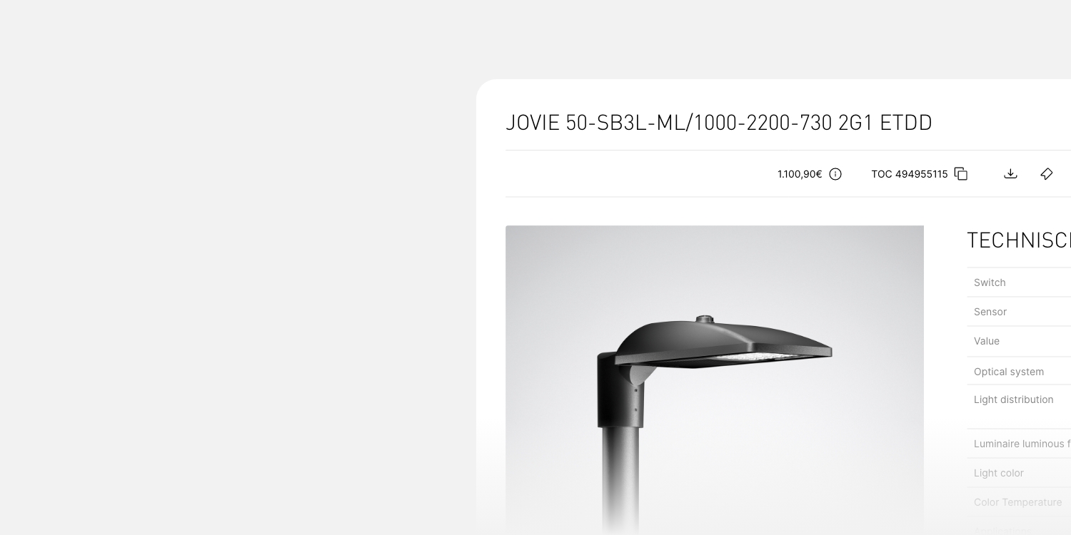 From the first interest to the concrete inquiry: With your watch list, you always have all data at a glance. TRILUX ONE also supports you with data sheets, installation instructions and planning data.