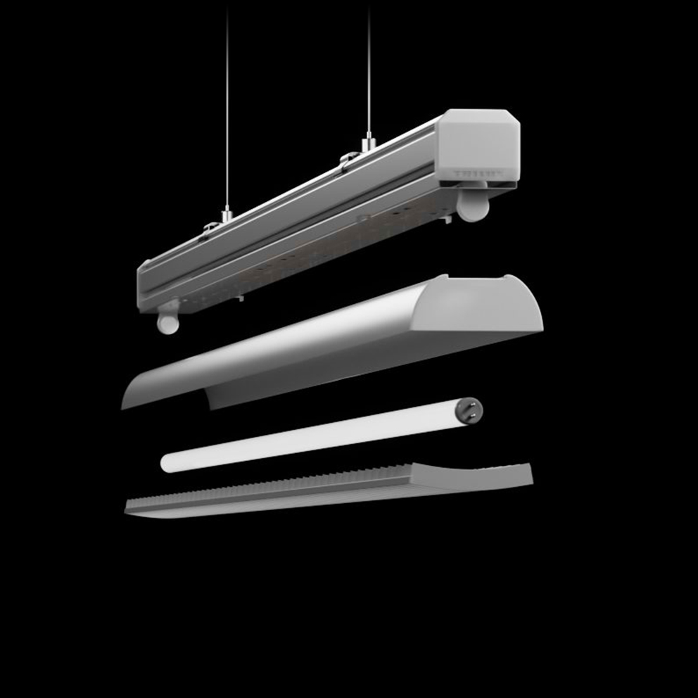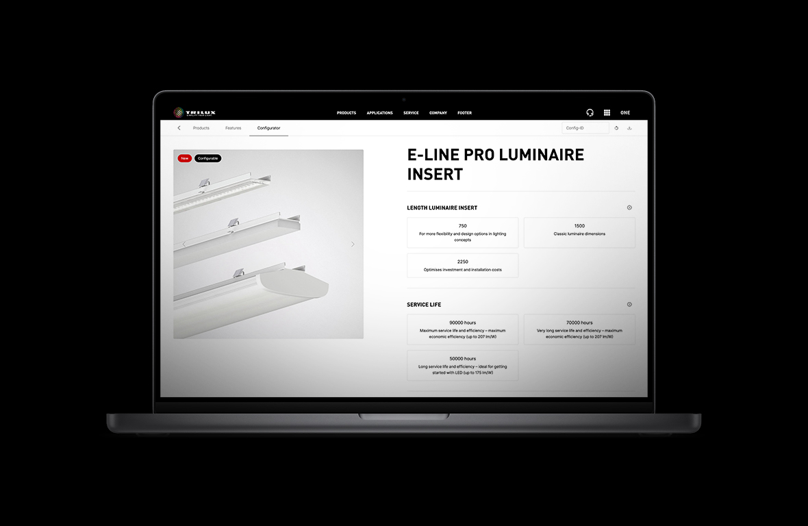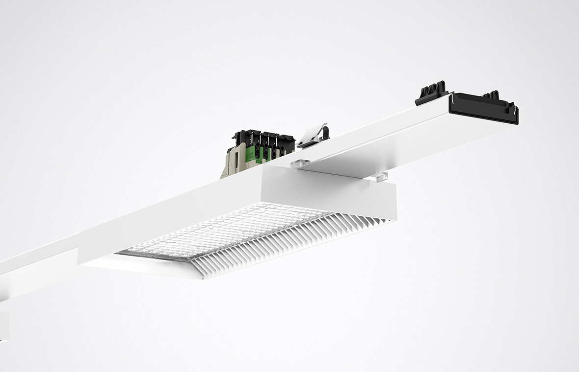 No other continuous line system can be planned, installed and, if necessary, disassembled as quickly and easily as E-Line Pro. A new online configurator opens up the variety of optics and flexibility of the system. The optimised design saves time and costs during mounting.