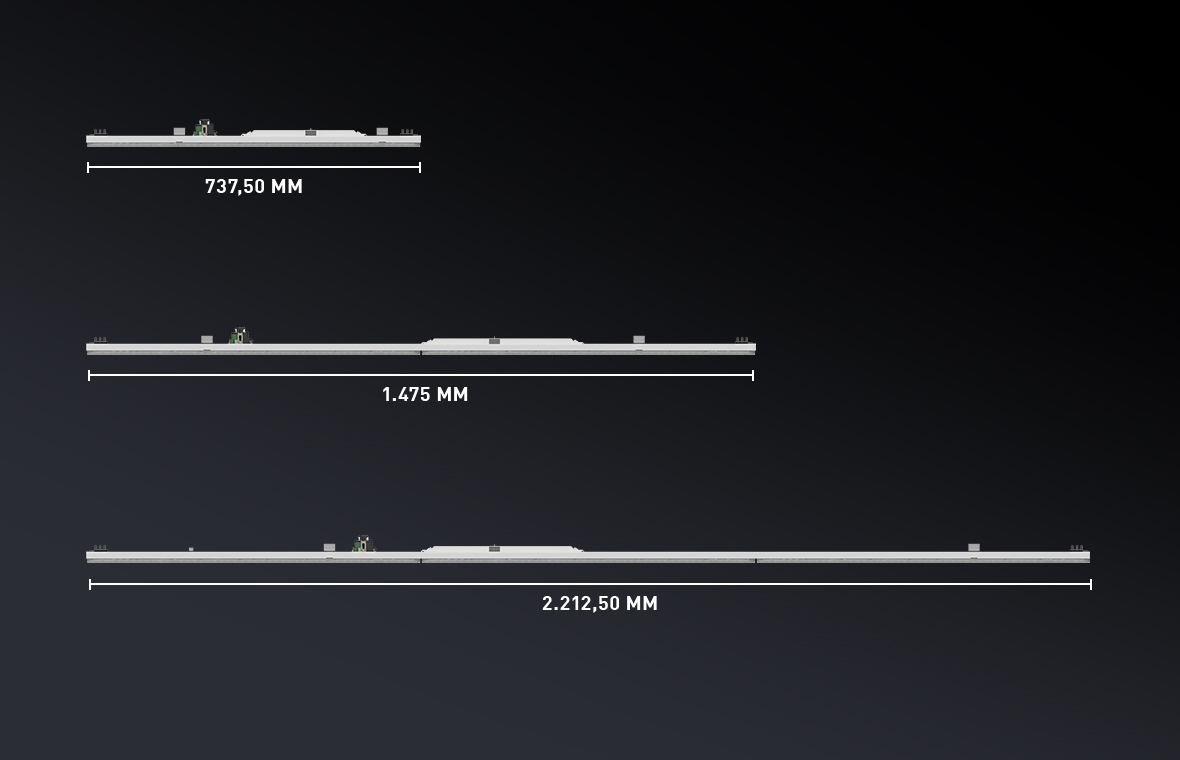 The different lengths of the E-Line gear trays offer maximum freedom: 737.5 mm for more flexibility in planning, 1,475 mm for 1:1 replacement in refurbishment and 2,212.5 mm for use in cost-efficient projects.
