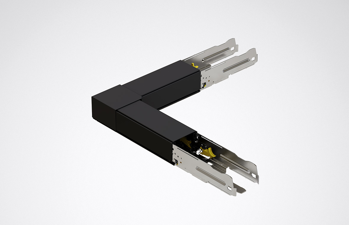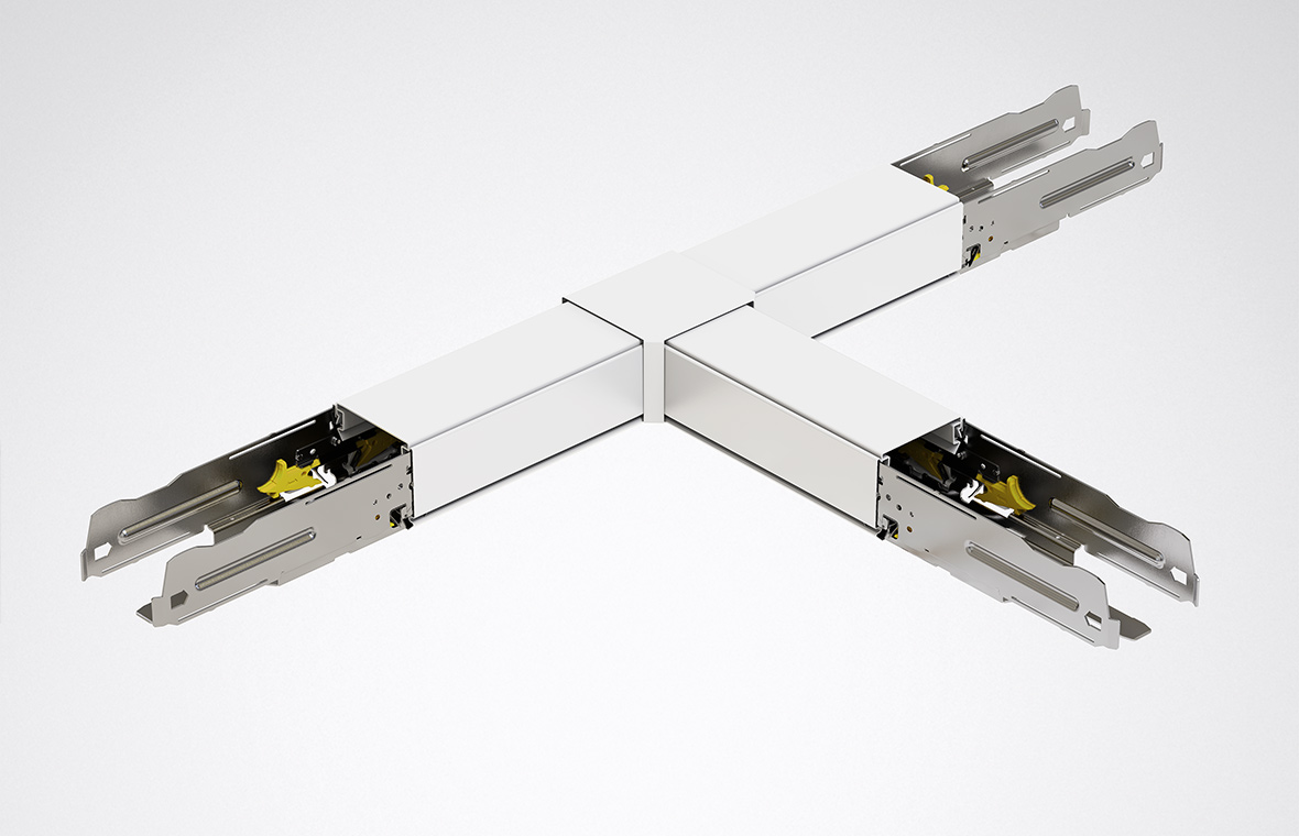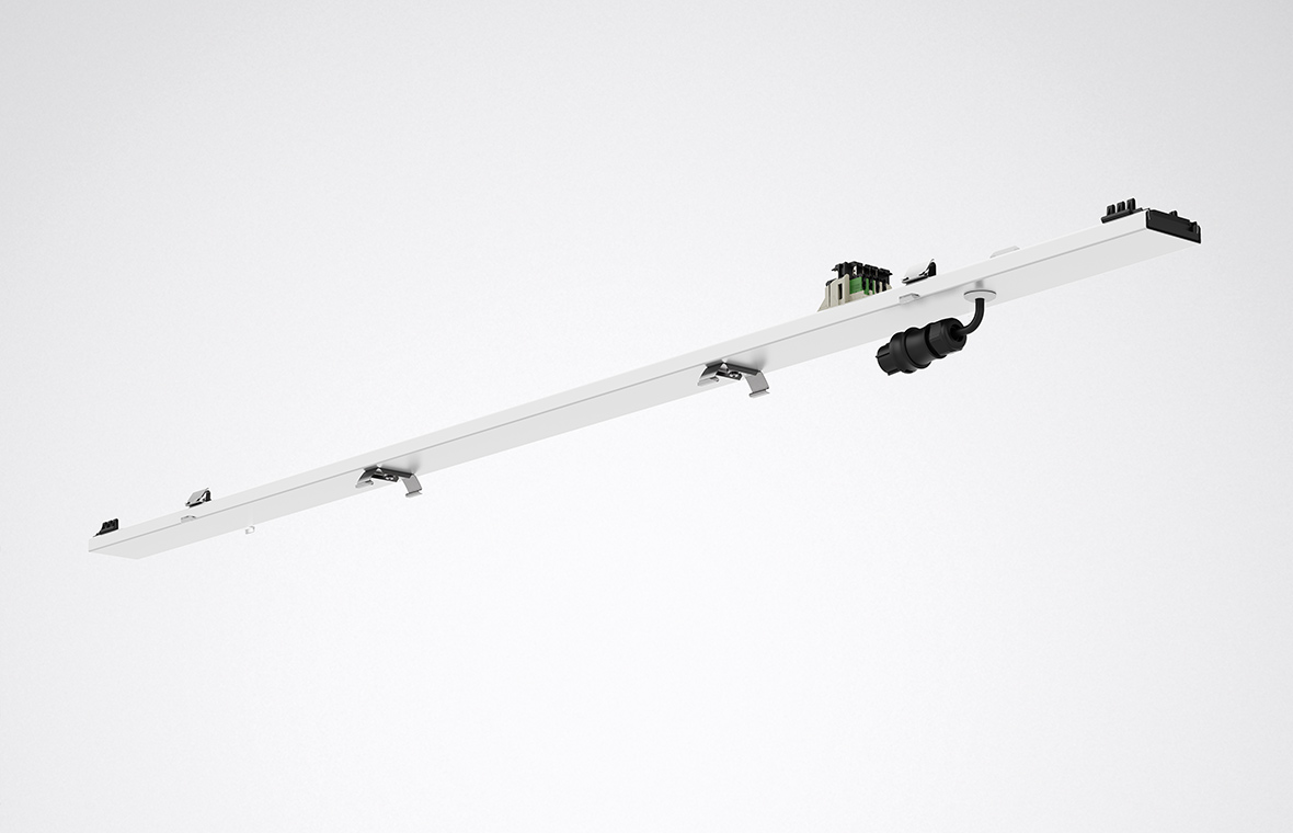 The trunking of E-Line Pro has been redesigned. Due to the minimally increased width of the profile, the gear tray is now submerged into the profile. The feed-in is without visible interference points and the end caps have also been redesigned. The result: a modern, clean look that is ideal for applications such as retail, office and education.