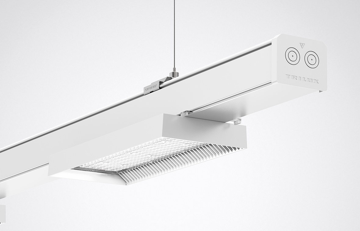 TRILUX has made its continuous line system even better: easy to install, versatile and connected in every respect. This can be seen, heard and felt during mounting. The direction is clearly marked in the profile and the new couplings, inserts and modules click in with acoustic feedback – for secure electrical and mechanical connection.